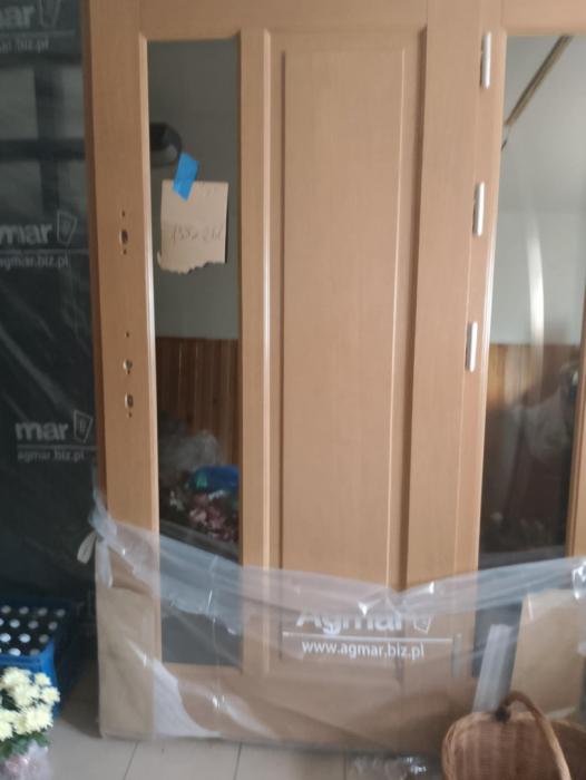Sprzedam nowe drzwi zewnętrzne drewniane firmy Agmar :prawe ,wymiary 135x210 , kolor winchester,cena 6500,00 zł oraz prawe, wymiary 150x210, kolor orzech , cena 5500,00 zł.